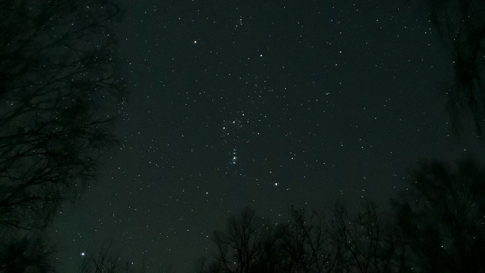 В левом нижнем углу на фото - Сириус, а по центру - созвездие Ориона)