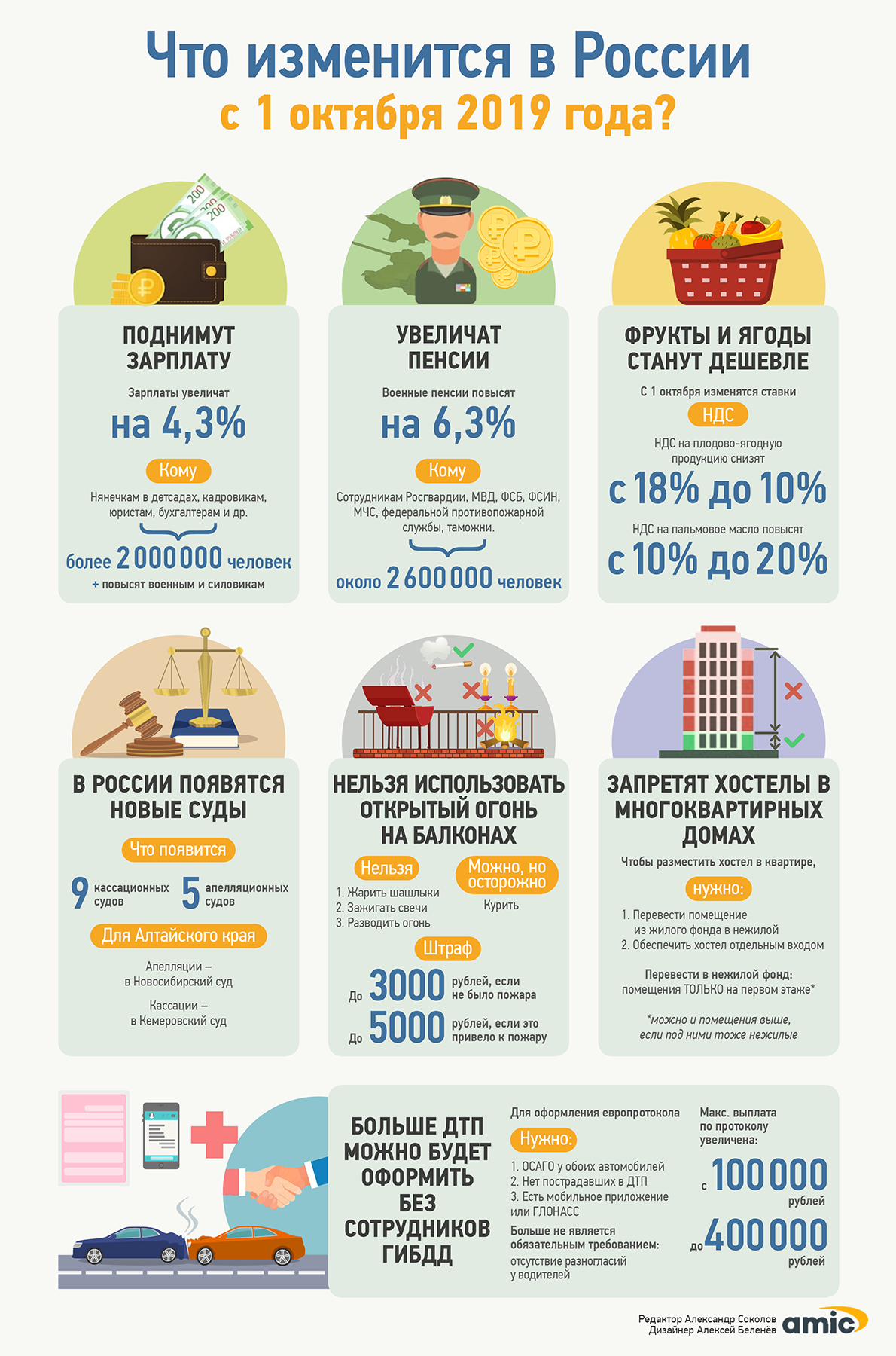 С 1 октября 2019 года в России вступят в силу сразу несколько важных изменений в законодательстве. Они коснутся как цен на некоторые продукты (спойлер: что-то даже подешевеет), так и пенсий и зарплат. Появятся и новые запреты (куда же без них). Однако курение на балконе, которое стало предметом споров и обсуждений в обществе, судя по всему, останется разрешенным. Подробнее о том, что изменится в жизни россиян с 1 октября, смотрите в инфографике amic.ru. А вдруг вы можете рассчитывать на прибавку к зарплате или пенсии.