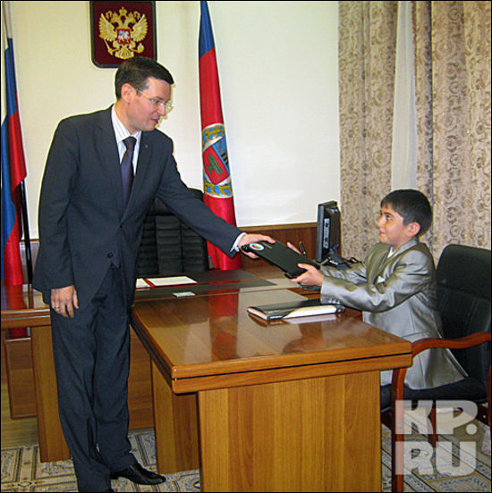 И вот после публикации в "КП" - Барнаул" этой истории в приемной президента узнали о том, что школьник подарок так и не получил, и решили исправить недоразумение. В пятницу, 10 июня, Ахмеду вручили ноутбук в Барнауле в приемной Президента РФ в Алтайском крае.