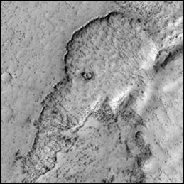 The Daily Mail сообщили о том, что аппарат NASA в рамках проекта по получению изображений с высоким разрешением (HiRISE) сфотографировал на поверхности Марса "голову слона". Ее очертания образовали потоки лавы, - уточняет YTPO.ru.