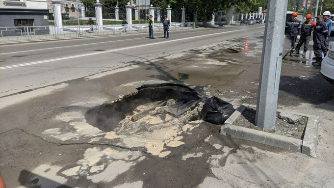 Днем ранее на проезжей части улицы Молодежной в районе пересечения с проспектом Ленина провалился асфальт. На месте образовалась огромная яма. Одну из полос улицы временно перекрывали для ремонта.