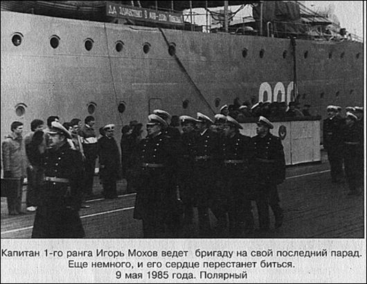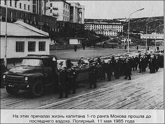 Старший - капитан 1-го ранга Игорь Мохов, не вылезавший из "автономок" - умер в 1985-м перед строем бригады - от разрыва сердца, в День Победы. Сохранились снимки: вот капитан 1-го ранга ведет в парадном марше свою бригаду по причалу, а вот грузовик-катафалк везет гроб, накрытый военно-морским флагом по тому же причалу к борту торпедолова. Разница между фотографиями всего в два дня. Игоря Николаевича Мохова похоронили в Ломоносове, городе, где прошло детство. Отец лежит неподалеку — на дне Финского залива в отсеке Щ-317. До сих пор неизвестно, как она погибла. Только в последнее время, когда шведские аквалангисты стали находить на грунте затонувшие субмарины, кое-что прояснилось.