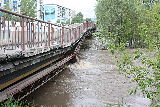 На фото: в Горно-Алтайске подмыт мост в районе остановки Мебельная