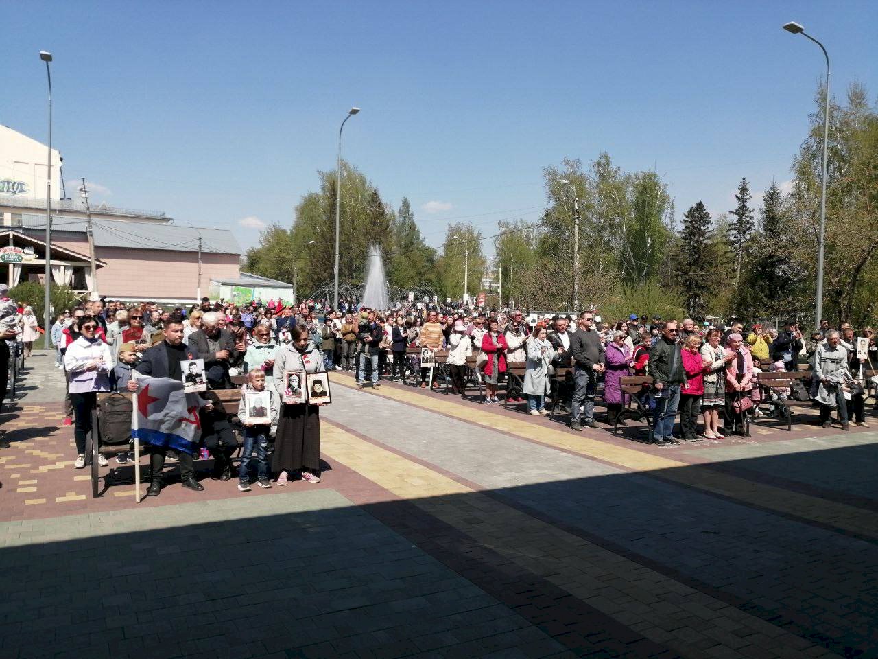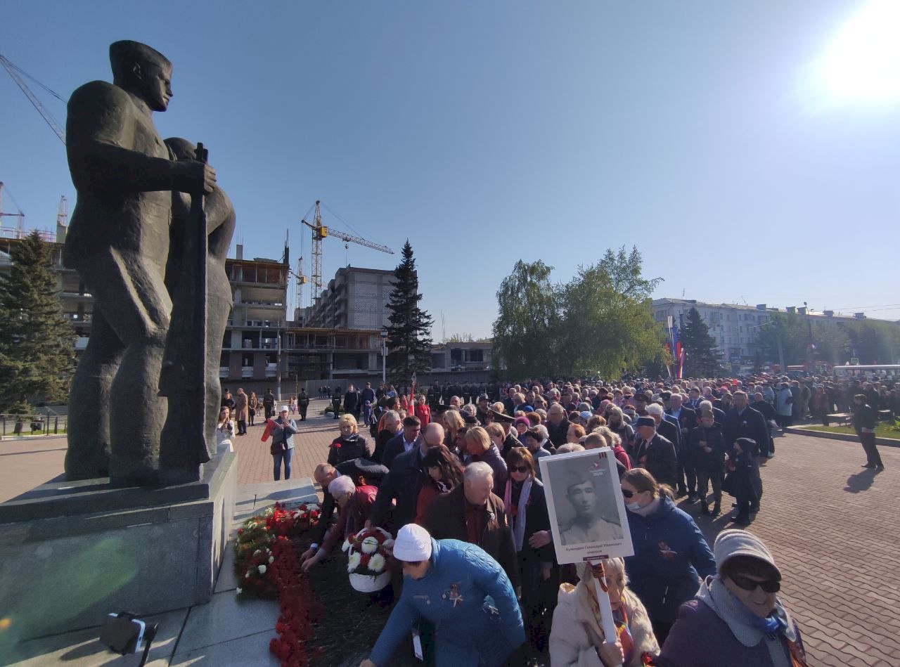 10:48 — Началась акция «Бессмертный полк». Участники пойдут по главной улице города — проспекту Ленина.