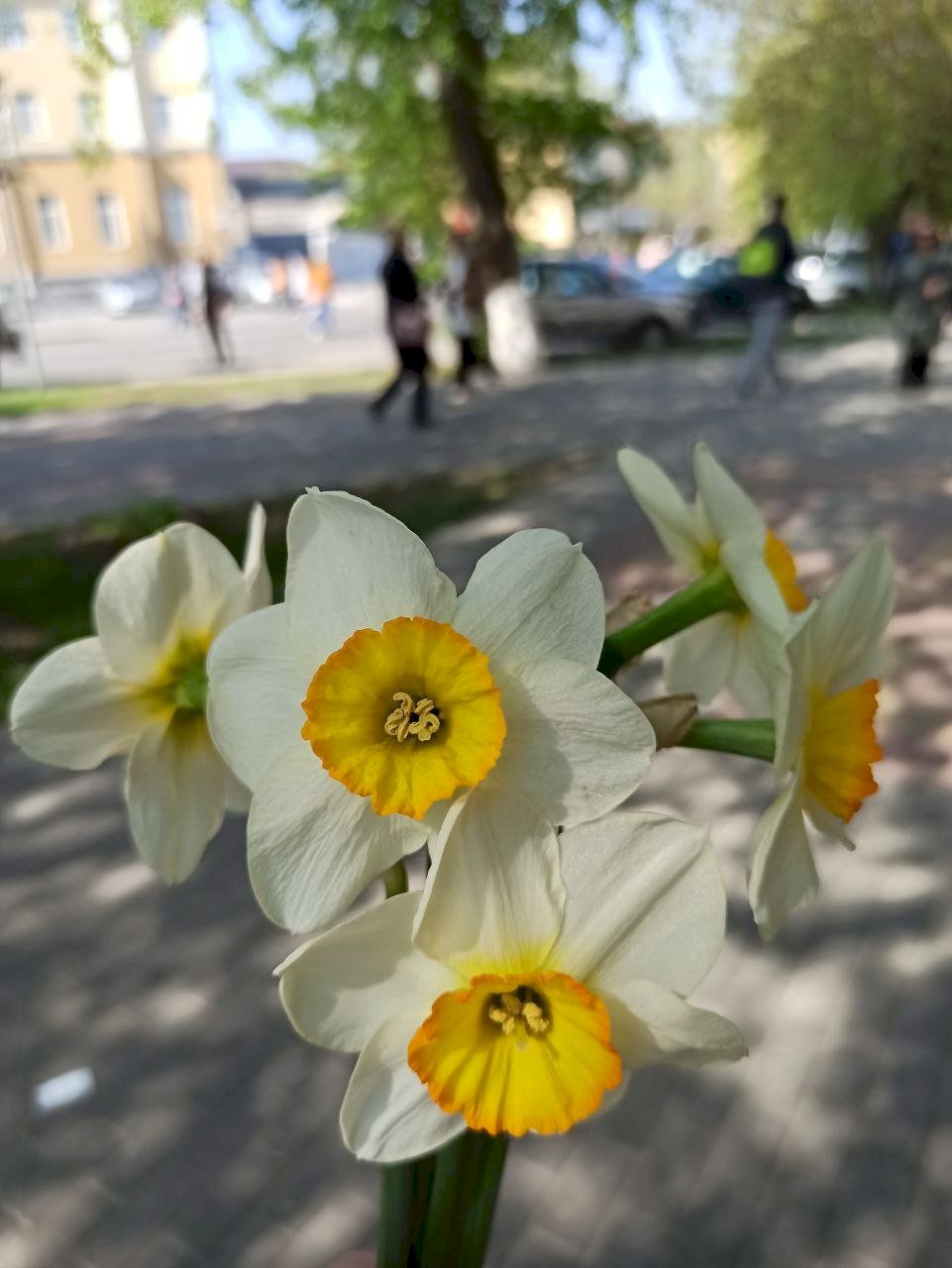 10:55 — Незнакомые мужчины раздают на улице женщинам цветы.
