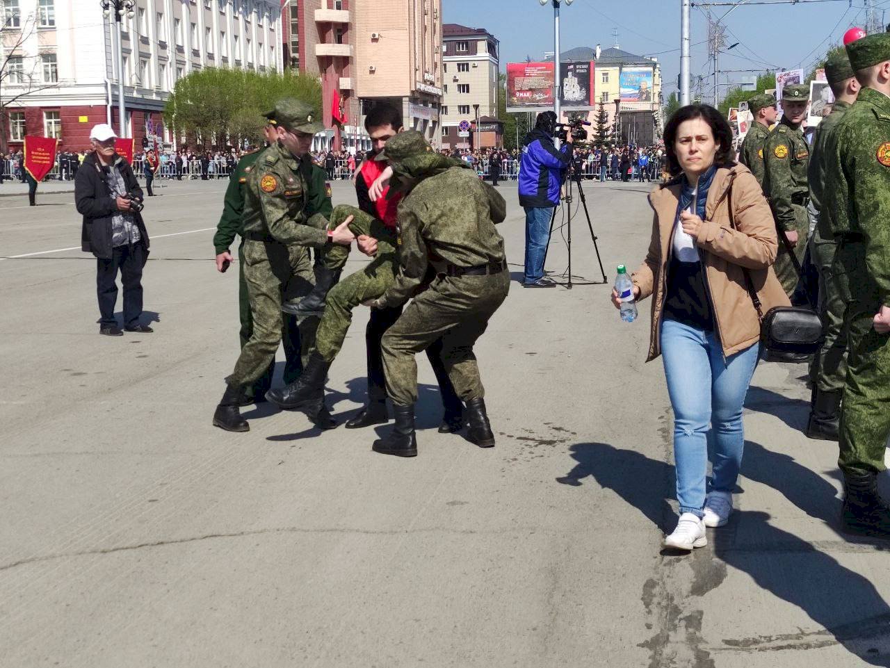 11:05 — Участник парада упал в обморок, передаёт наш корреспондент.