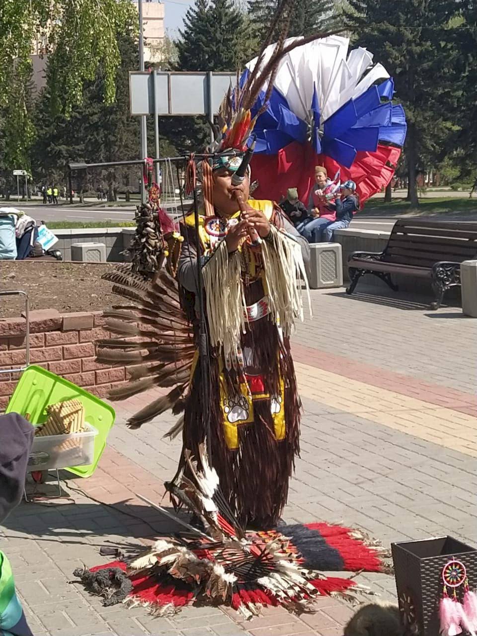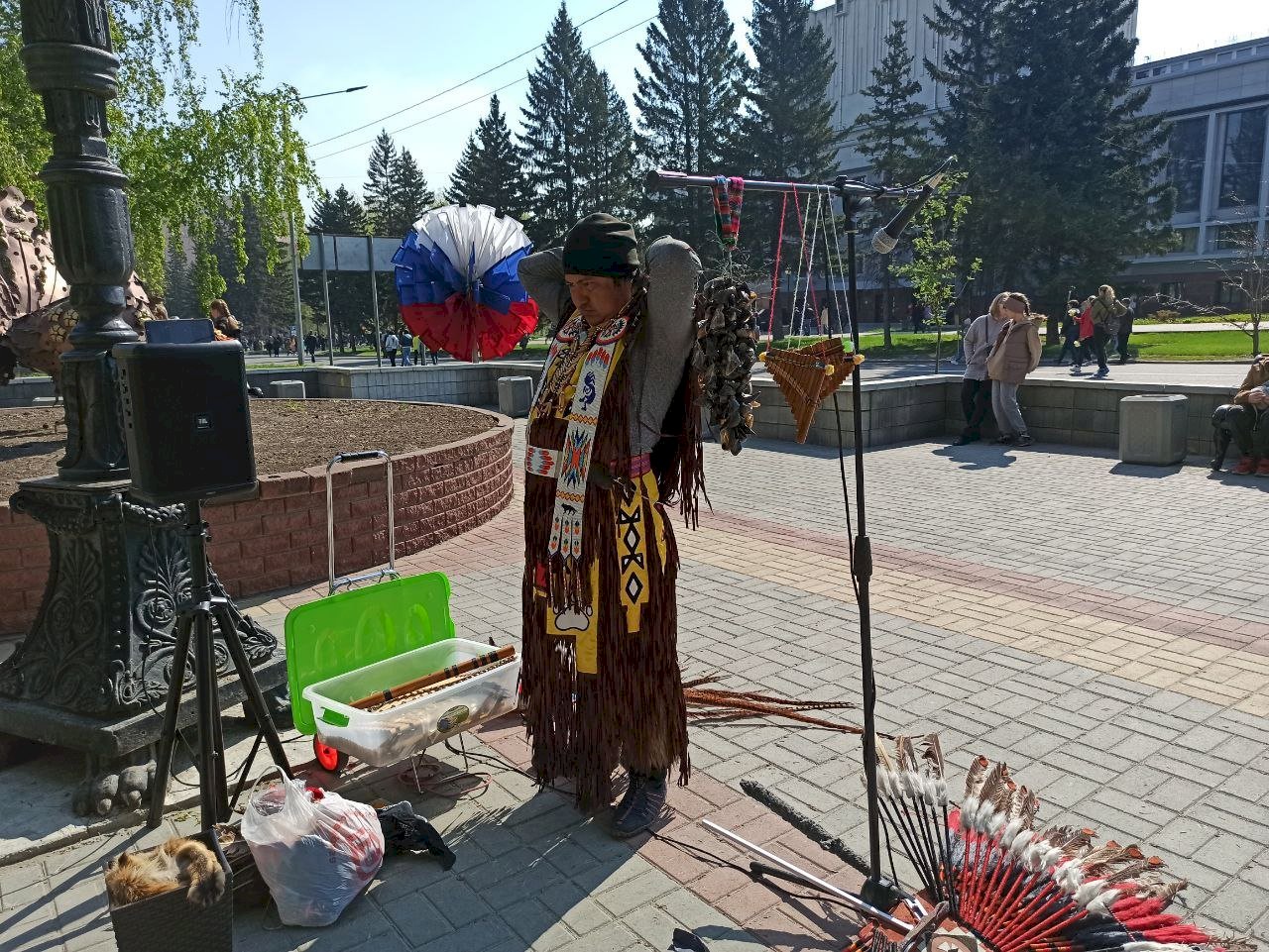 13:41 — У театра драмы — караоке. Барнаульцы поют военные песни