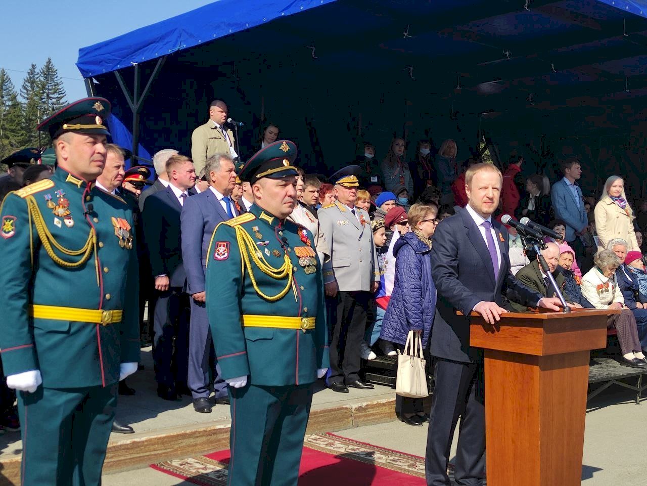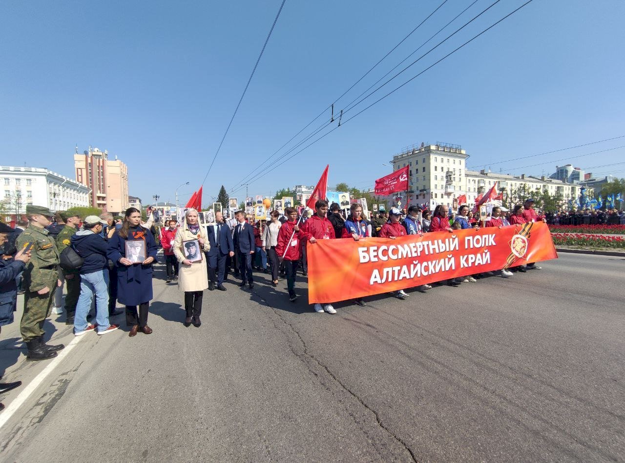 10:13 — С Днём Победы на параде Победы жителей Алтайского края поздравляет губернатор Виктор Томенко.