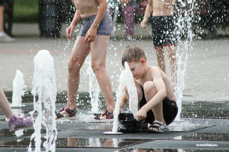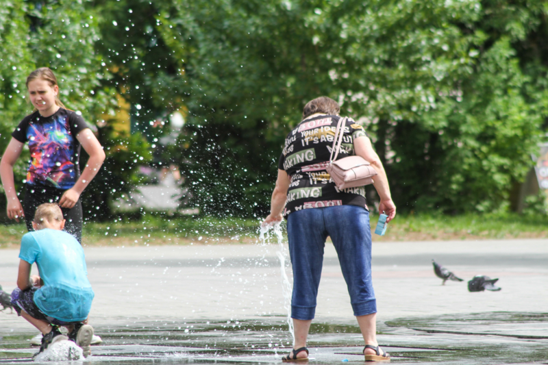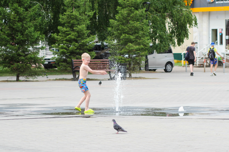 Барнаульцы в жару охлаждаются всеми доступными способами. Для детей в городе отлично подошел пешеходный фонтан на Панфиловцев.