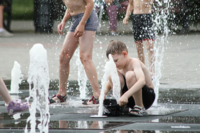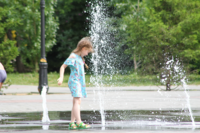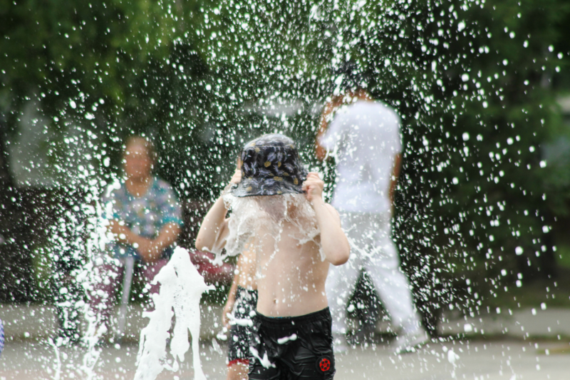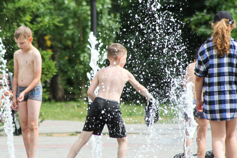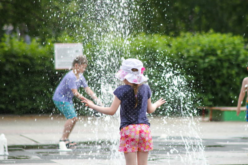 Барнаульцам в жару помогает охладиться пешеходный фонтан