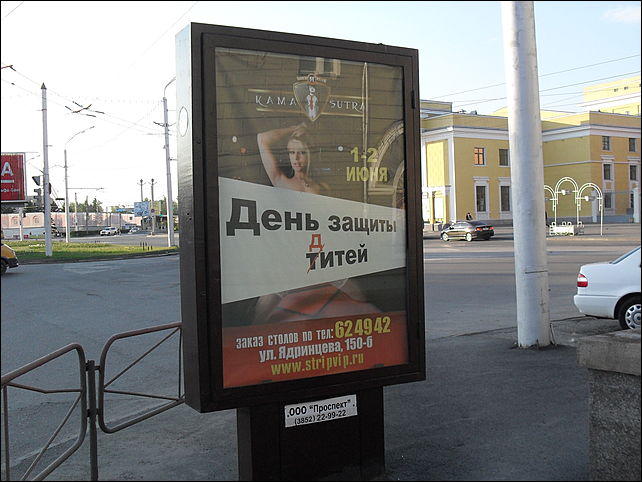 Кстати, напомним историю с рекламой местного эротического бара "Kama-sutra", в которой был использован слоган "День защиты д(т)итей". Среди читателей ИА "Амител" мнения по поводу пошлости рекламы разделились. 29 мая 2012 года Управление Федеральной антимонопольной службы по Алтайскому краю, возбудив дело об административном правонарушении и проведении административного расследования по факту размещения наружной рекламы "Kama-sutra", попросило граждан высказаться насчет рекламы, голосуя на сайте управления в разделе "Опросы".