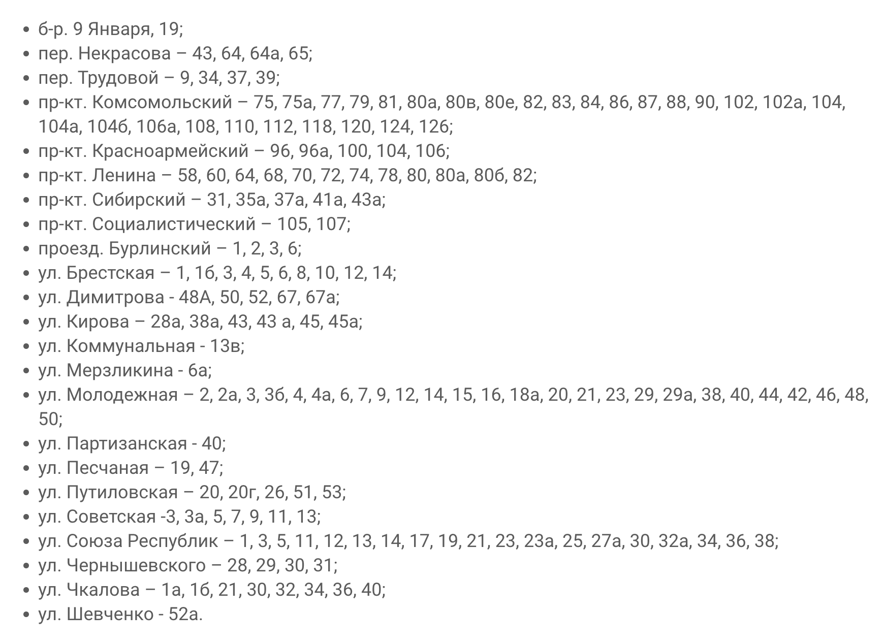 В связи с этим горячую воду отключат по следующим адресам: