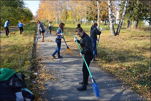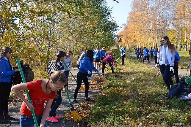 Около 60 школьников очистили сквер Победы в Барнауле