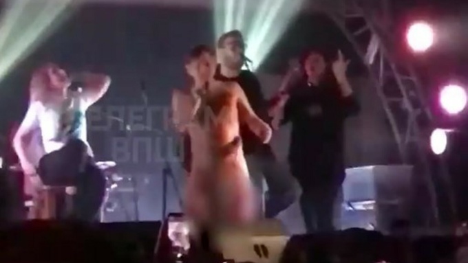 Концерт проходил в клубе MOD. В момент исполнения песни единственный элемент одежды случайно сполз.
