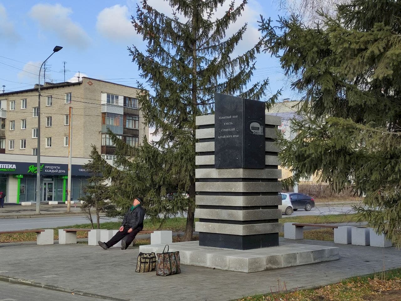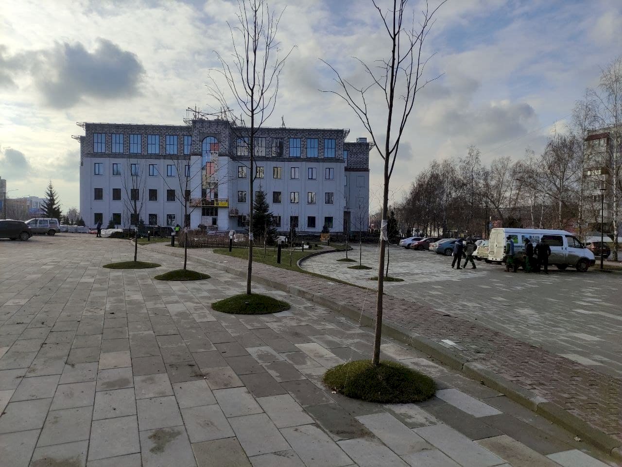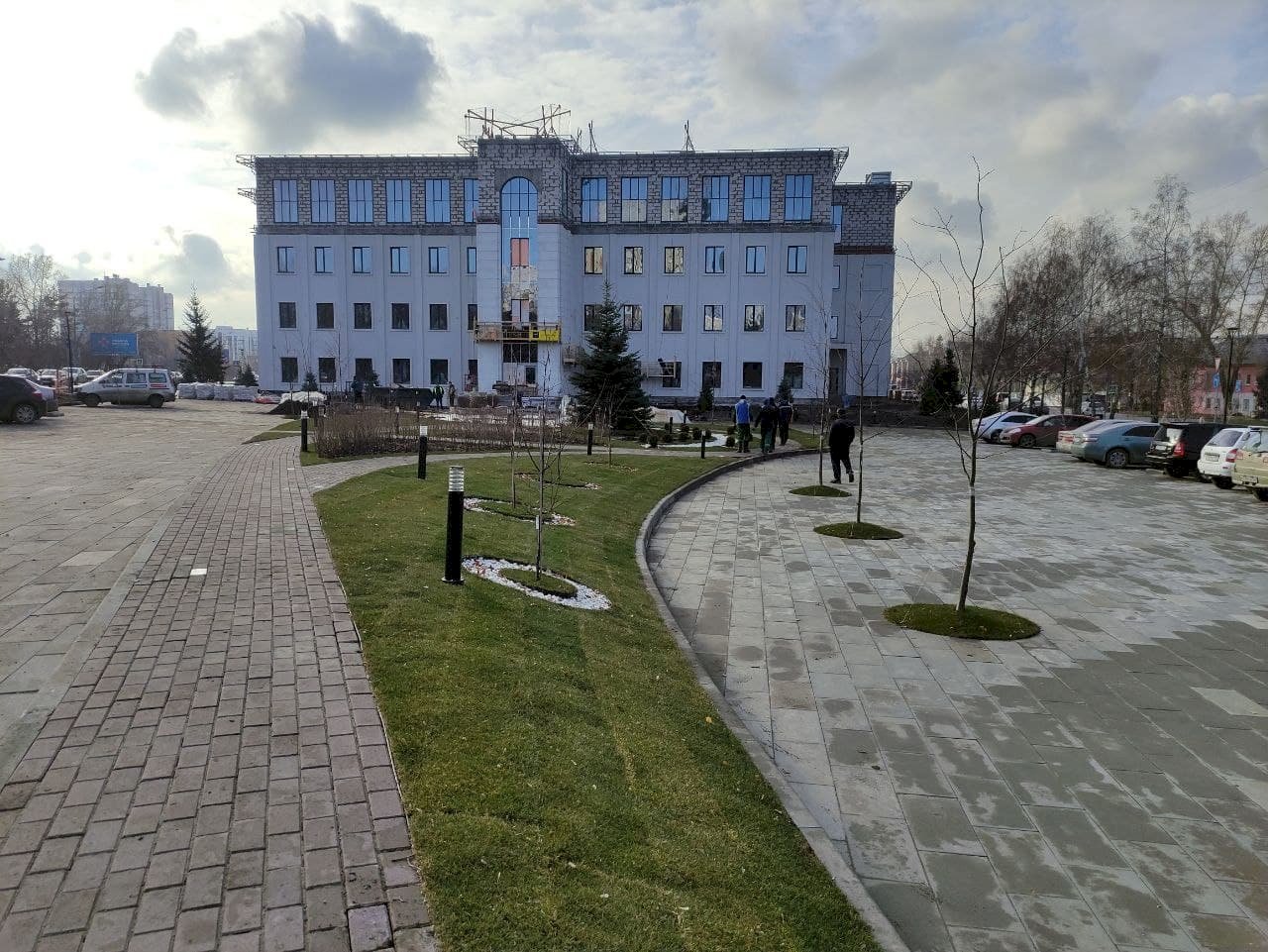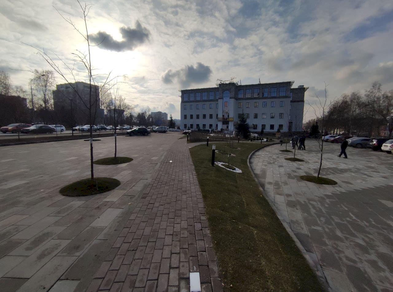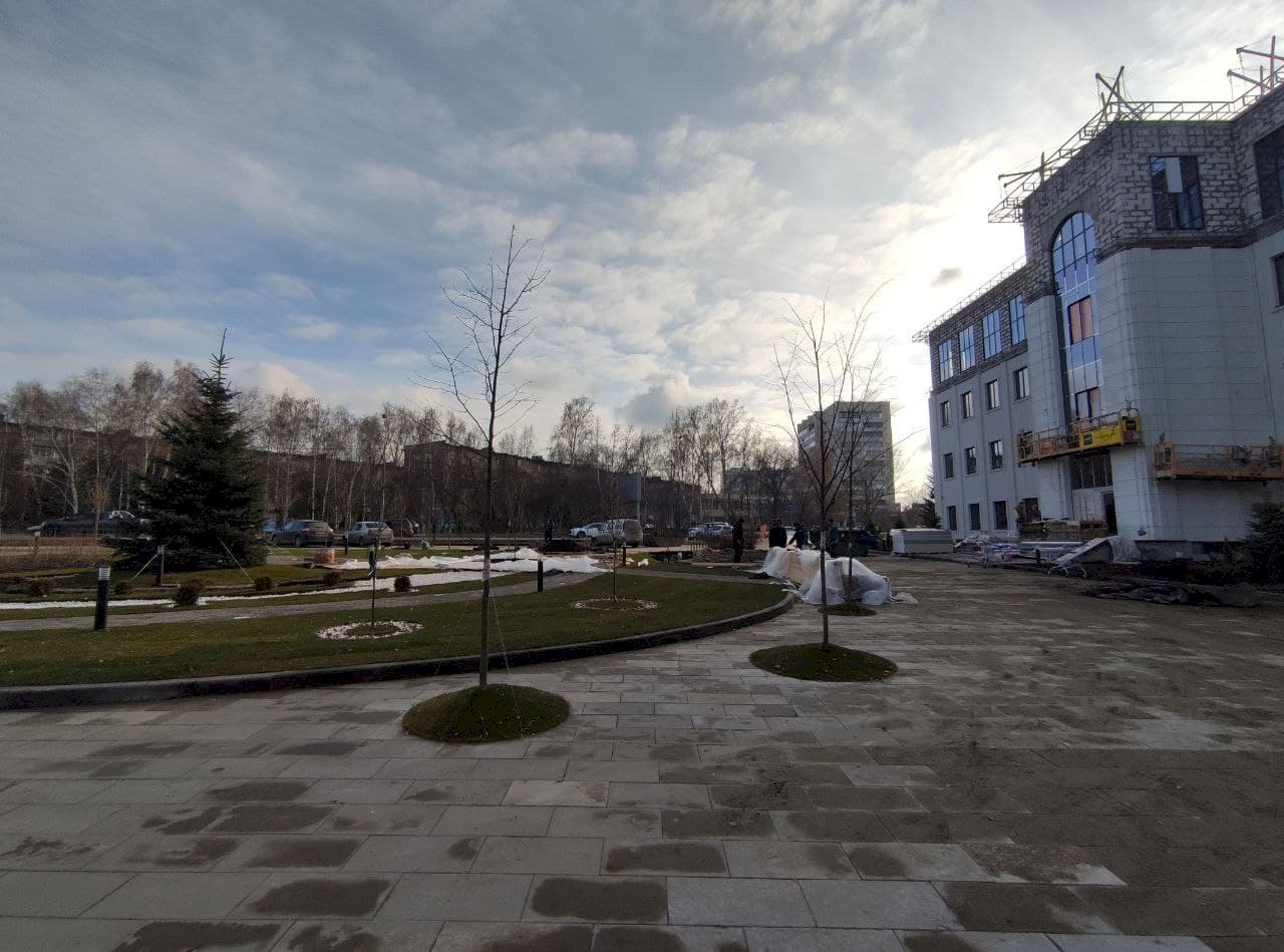 Обустройством сквера занимается ООО «Первый», которому принадлежит объект на пр. Строителей, 45. Администрация Железнодорожного района Барнаула контролирует работу. Старый «офисник» рабочие также реконструируют. У него появился дополнительный этаж, пристройка и новый фасад.