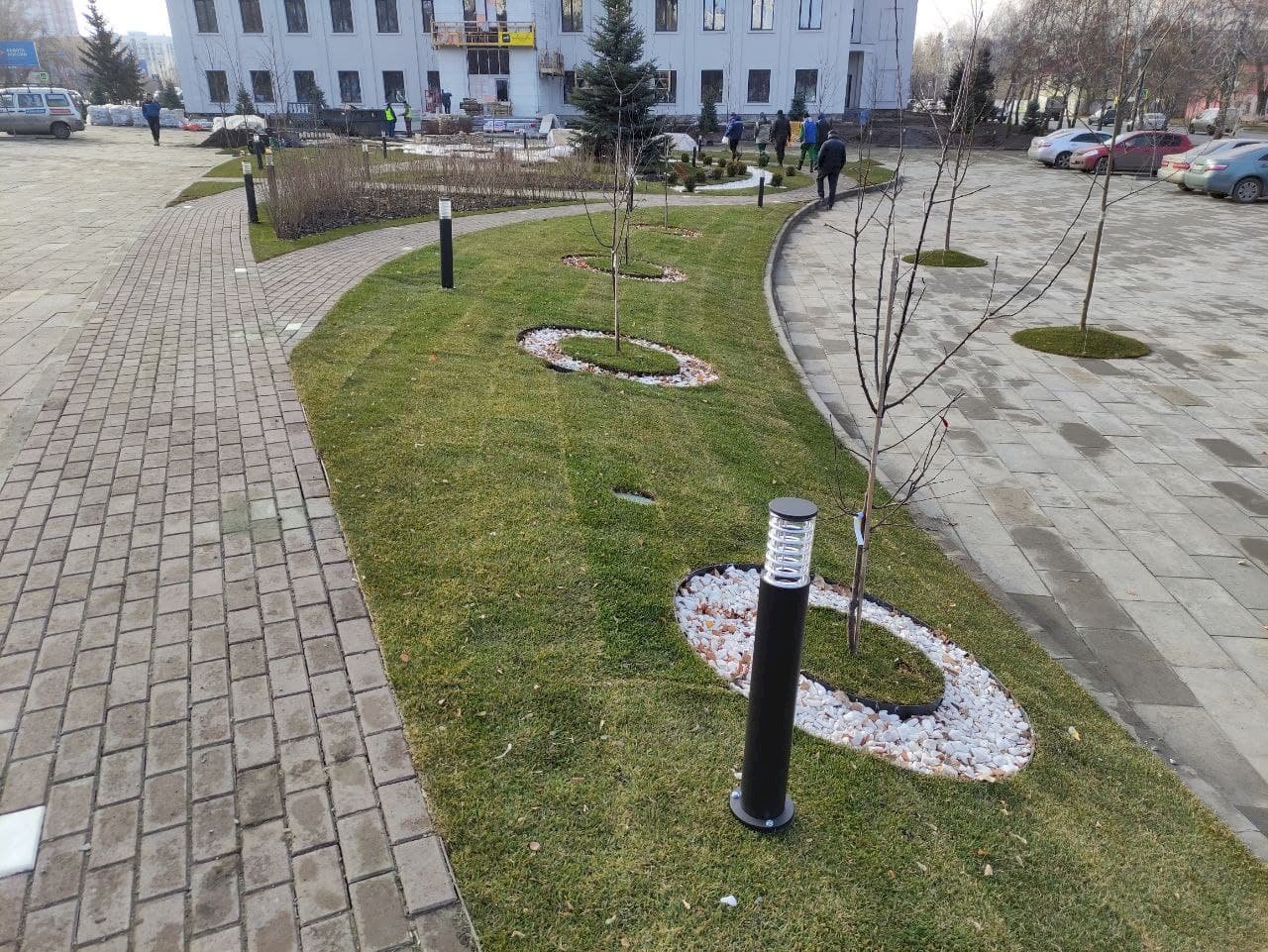 С другой стороны здания на пр. Строителей, 45, также создаётся благоустроенная общественная территория. К зиме работы уже должны быть закончены.