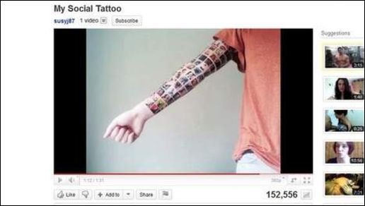 SusyJ87 разместила видео, сделанное во время процесса нанесения "социальной" татуировки, на YouTube, и получила немало критических комментариев. Так, некоторые сочли тату ненастоящей, а другие назвали поступок девушки рекламным трюком.