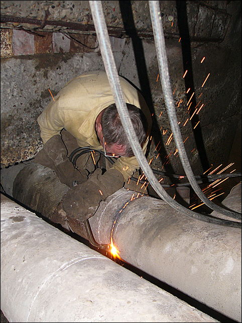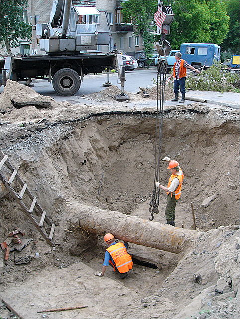 Наиболее серьезные работы были проведены на улице Молодежная 4, где теплотрассу диаметром 300 мм ремонтировали в очень стесненных условиях, между двумя домами.