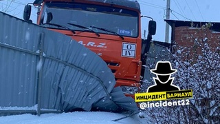 В Барнауле в забор частного дома врезался мусоровоз, а в него въехала "Газель"