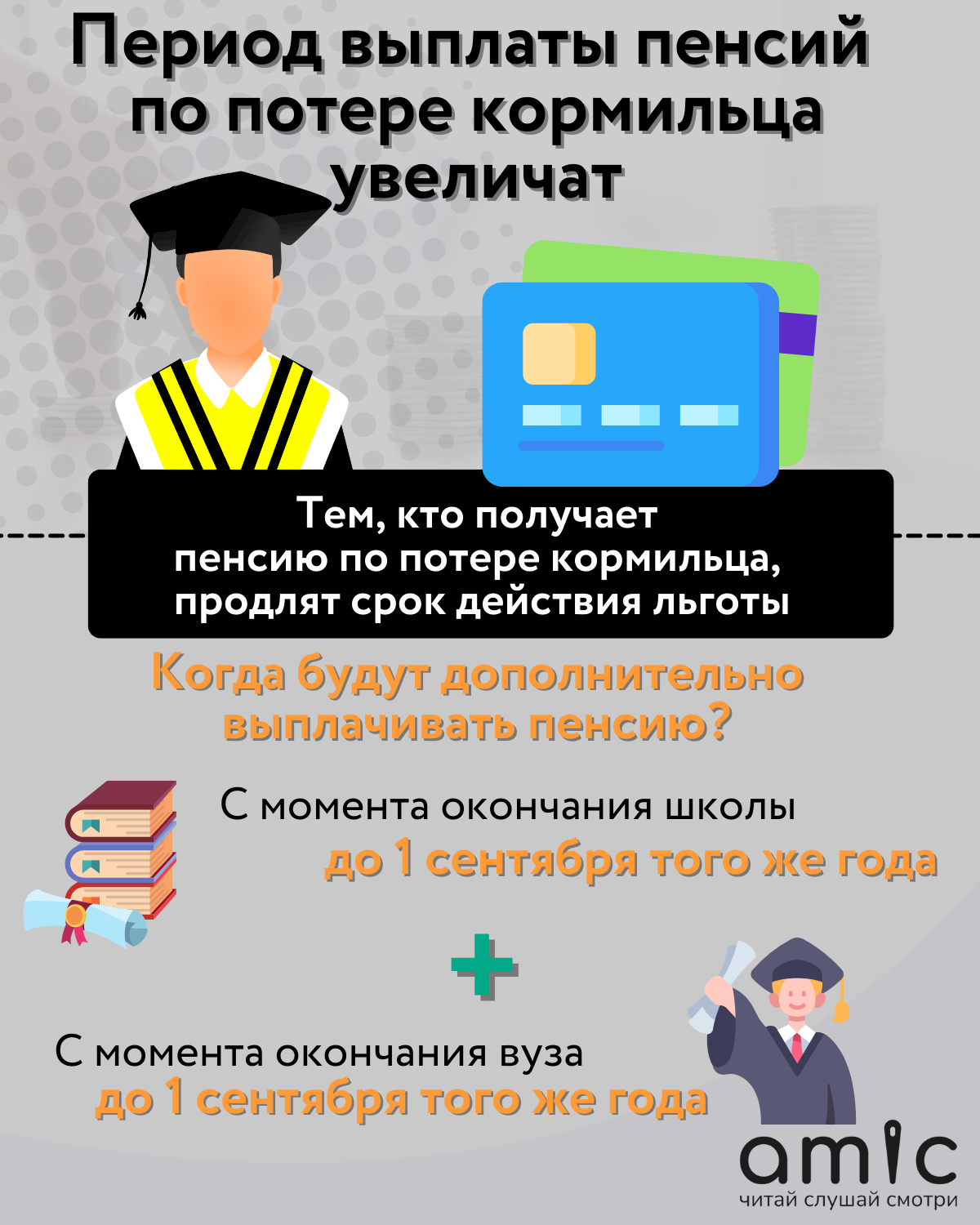 Более того, начислять пенсию по потере кормильца теперь будут и после получения диплома. Впрочем, недолго: до 1 сентября того же года.