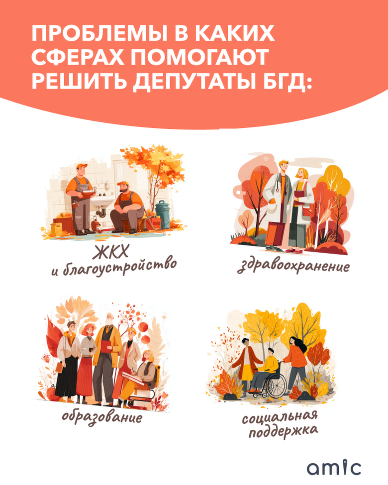 Большинство обращений, поступающих к депутатам, касается вопросов жилищно-коммунального хозяйства и благоустройства. Также нередко горожане поднимают темы образования, здравоохранения и социальной поддержки.