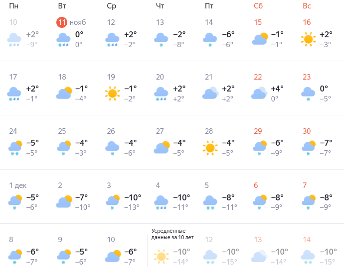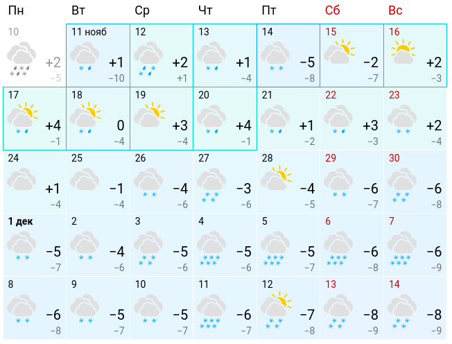 А вот с 1 декабря уже начнется зимняя погода: снегопады каждый день и минусовая температура. Впрочем, морозы не ожидаются, во всяком случае согласно долгосрочному прогнозу.