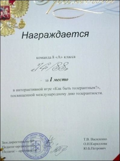потом выложили в сеть почётную грамоту, которой были награждены ученики 8
