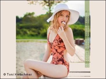И это издателю довольно хорошо удается. Например, с февральской страницы на вас смотрит крутой парень с безупречным телом в татуировках. Он демонстрирует накаченный торс, как бы говоря "Я - студент. А вам слабо?". Или вот летний вариант: с обратной, "женской" стороны календаря вам обворожительно улыбается миловидная чувственная блондинка в бикини. Мол, приди в университет, и перед тобой откроется рай.