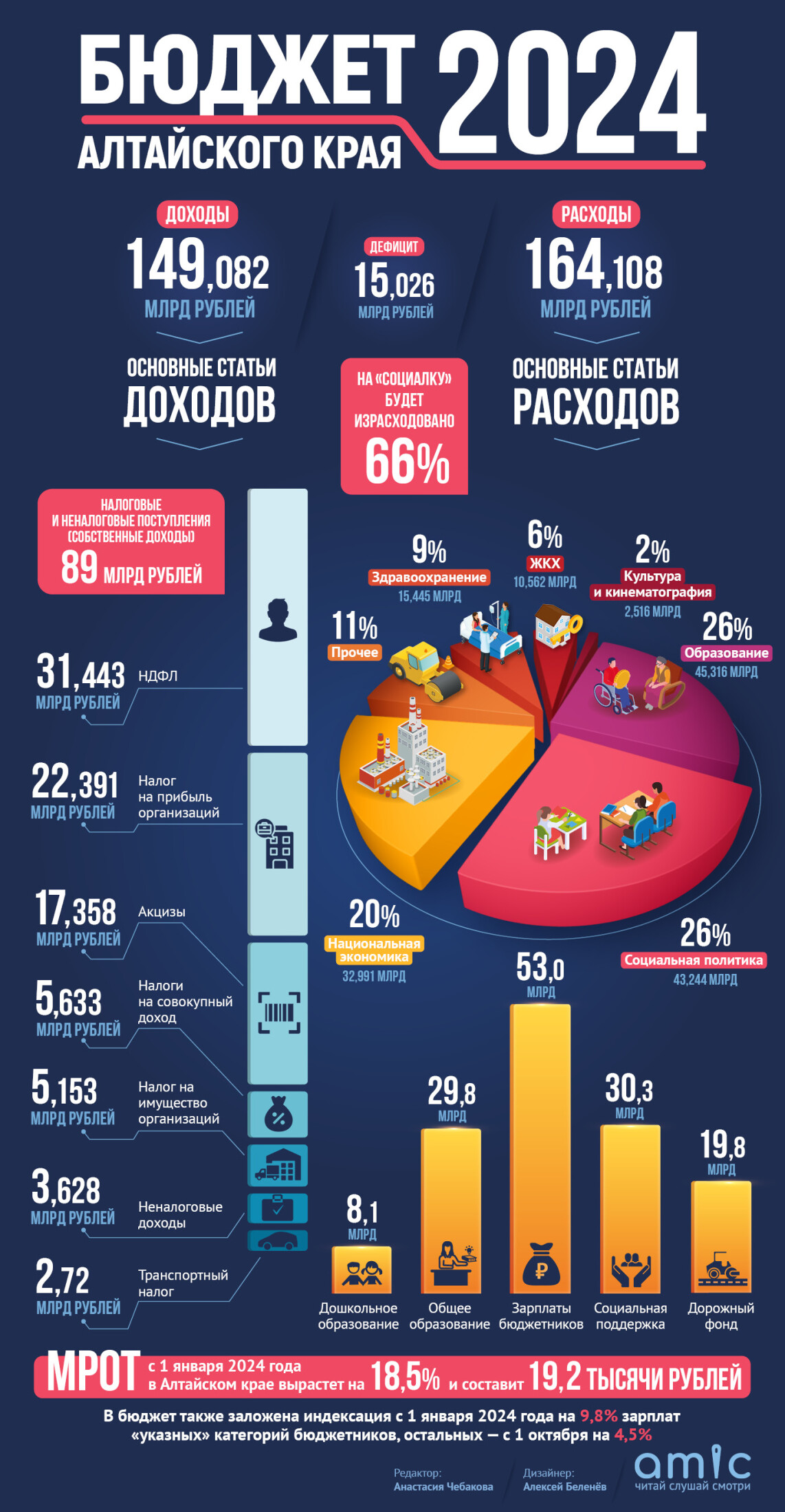 Куда потратим, откуда возьмем. Бюджет Алтайского края 2024 в инфографике amic.ru