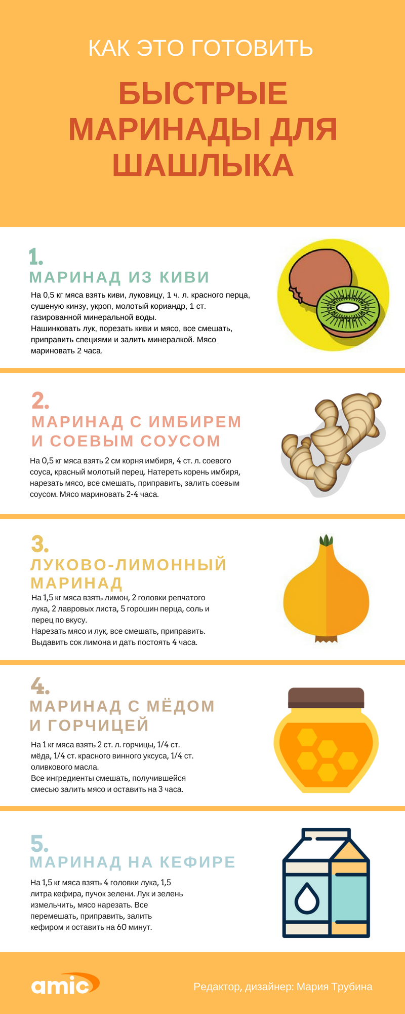 Маринад на киви, кефире, меде и другие рецепты в инфографике