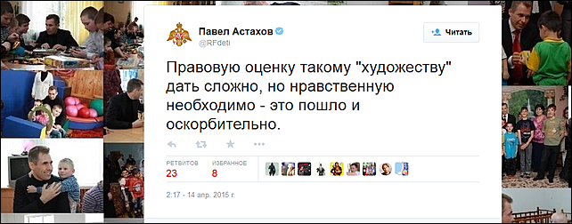 "Правовую оценку такому "художеству" дать сложно, но нравственную необходимо - это пошло и оскорбительно", - написал он в Twitter.