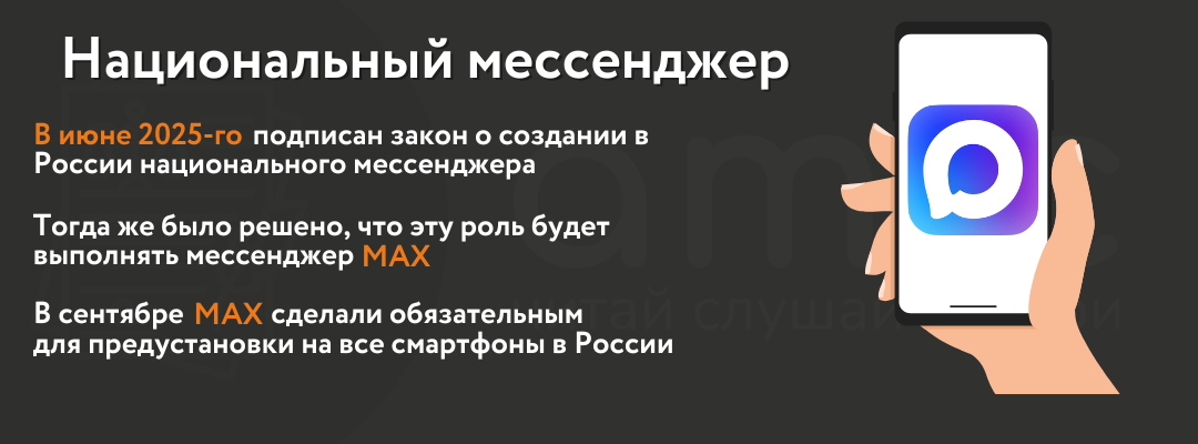 В июне 2025 года президент России Владимир Путин подписал закон о создании в России национального мессенджера, которым будут пользоваться 500 тысяч россиян в сутки и который будет объединен с сервисами государственных и муниципальных услуг. В июне 2025 года правительство решило, что сервис будет создан на основе мессенджера Max, разработанного дочерней структурой холдинга VK – компанией "Коммуникационная платформа".