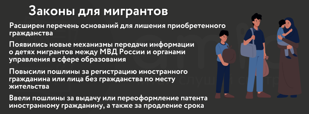 В июле 2025 года депутаты Госдумы расширили перечень оснований для лишения приобретенного гражданства несколькими статьями УК РФ, среди которых убийство, вовлечение в занятие проституцией, организация незаконной миграции и так далее.