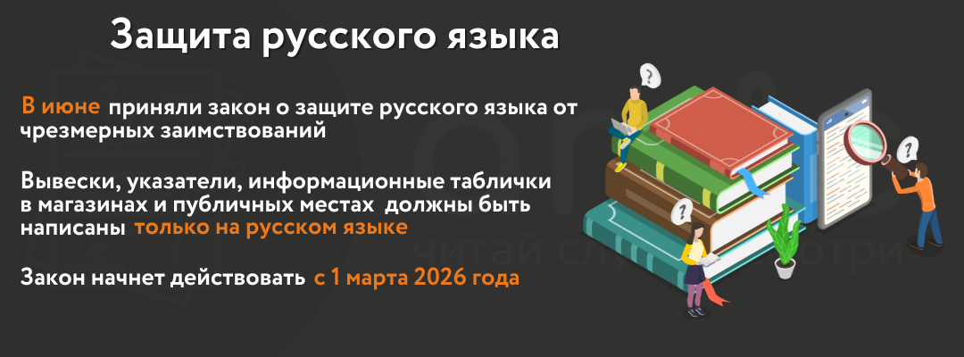 В июне 2025 года Госдума приняла закон о защите русского языка от чрезмерных заимствований в публичном пространстве. Теперь вывески, указатели, информационные таблички в магазинах и публичных местах могут быть написаны только на русском языке. Их можно дублировать на языках народов России или на иностранных. Кириллицу должны будут использовать и застройщики при создании коммерческих названий в случае рекламы новых объектов недвижимости.