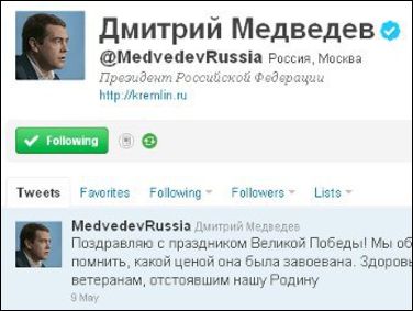 В феврале 2011 года Медведев был признан главным российским блогером по версии жюри конкурса "Блог Рунета-2011". При этом в этот же период времени аккаунты президента уступили по популярности пародийному твиттеру @KermlinRussia, который ведется от лица вымышленного персонажа по имени Перзидент Роисси.