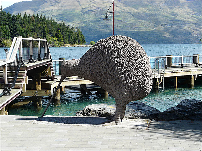 Добираюсь до причала. Причал охраняет птичка киви, безропотно почитаемая новозеландцами.