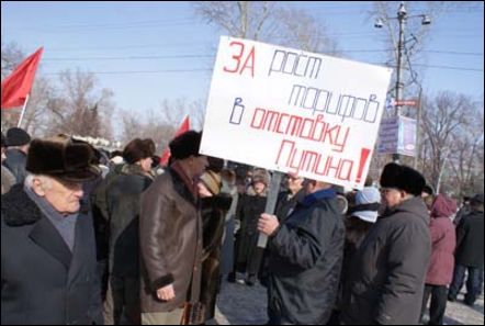 "Тарифы ряда предприятий отрасли не только не остались прежними, но даже превысили законный лимит роста - не более 30 процентов.  Протест граждан не замедлил себя ждать. Наряду с другими городами, "антитарифный" пикет прошел и в Бийске.  В минувшую пятницу (20 февраля)  к зданию мэрии пришло около сотни людей, желающих выразить свое несогласие с ценовым  беспределом в ЖКХ.  Организатором  акции выступил известный в городе ветеран - оборонщик Геннадий Хомяков. Поддержку пикету оказало общественное движение "Ветераны-пенсионеры  ВПК  г. Бийска". Среди его участников видны были и представители городского комитета КПРФ.