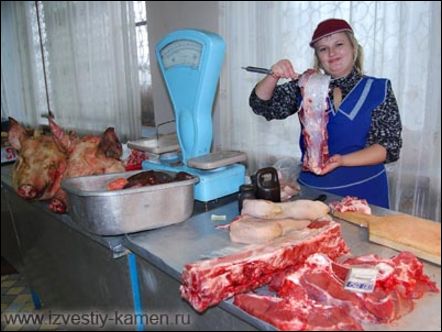 После рынка побывали корреспонденты "КИ" побывали и в магазине "Мясопродукты" ООО "Общепит". Там тоже торгуют свежим мясом. Арендуют часть помещения семья Старчиковых из Новоярков и семья Гасымовых из Камня. Валерий Старчиков был не против пообщаться и ничего не скрывал.