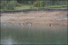 В данный момент идет заполнение его водой. Сейчас глубина составляет три метра. Максимально возможная глубина - семь метров. Рядом предполагается строительство еще двух небольших озер для очистки воды.