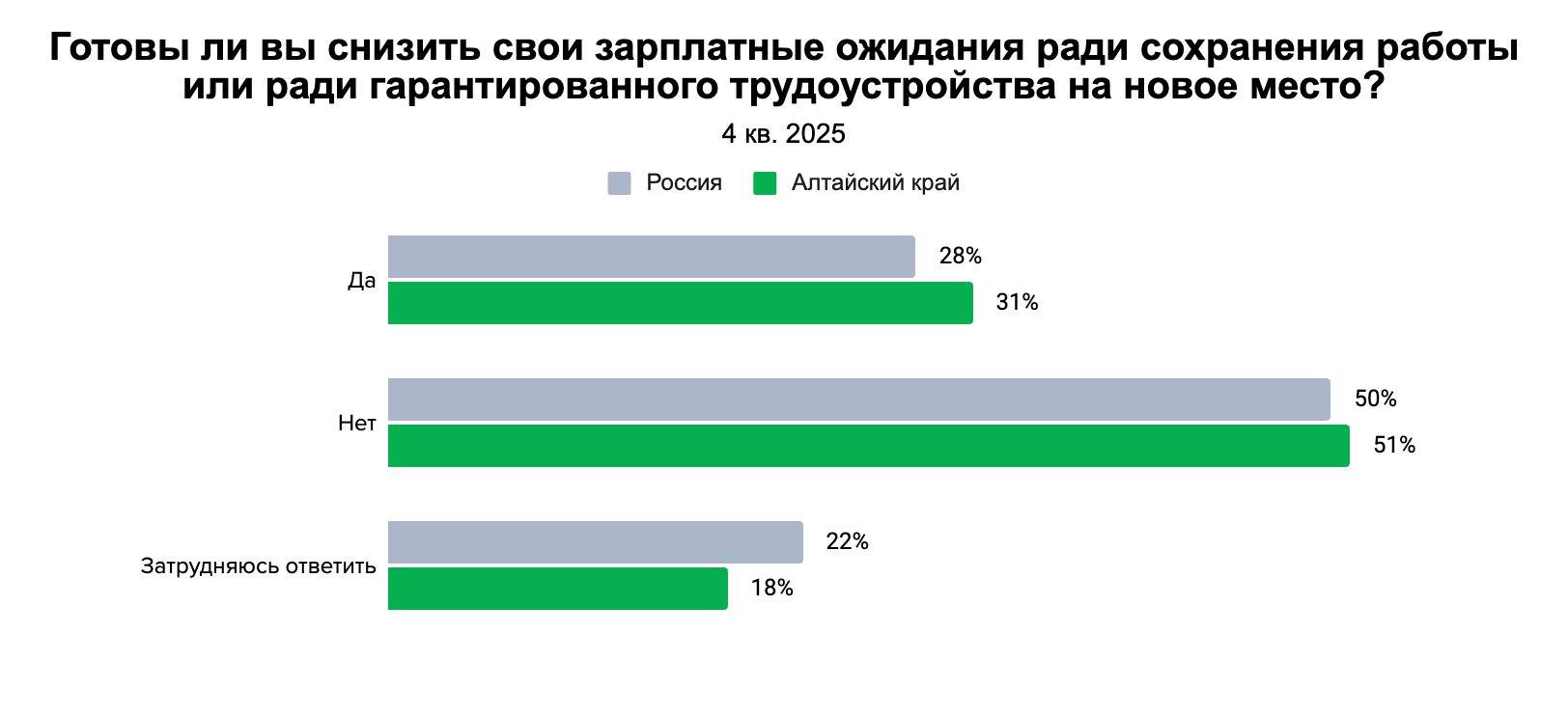 18% жителей Алтайского края затруднились однозначно ответить пойдут ли они на компромисс в зарплате, если потребуется.