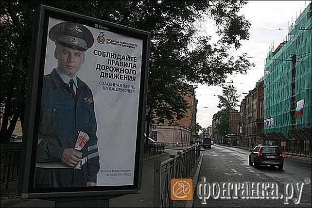 На Петроградской стороне вандалы испортили постер с гаишником