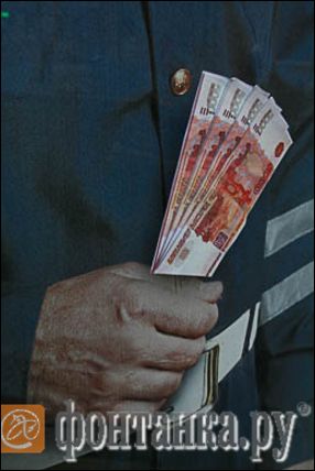 Однако в руке сотрудника ГИБДД при этом почему-то пачка пятитысячных купюр. Впрочем, если присмотреться, то можно заметить: деньги сотруднику правопорядка "вручили" какие-то шутники. Кто занимался "народным ребрендингом" - неизвестно.