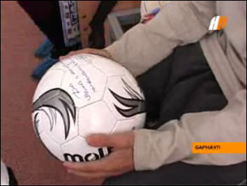 Так, Ваня из Рубцовска очень любит футбол, - он получил мяч с автографом кумира. Принимая подарок мальчик рассказал Алексею Смертину, что хочет быть тренером, и на защите стоять у него тоже хорошо получается.