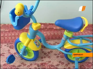 Пока погода за окном не позволяет испробовать подарок на улице, Таня осваивает велосипед в комнате.