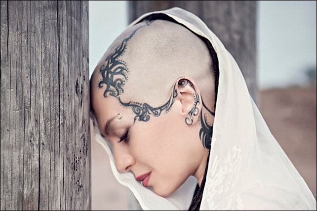 энергию разукрашенная татуировками певица, крепко упираясь босыми ногами