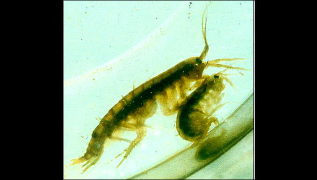 Микроспоридии P. mulleri представляют собой родственных грибам простейших размером приблизительно с красные кровяные тельца человека. Паразиты населяют мышцы своих хозяев, и их численность измеряется миллионами. Исследователи полагают, что именно для того чтобы прокормить всю эту ораву, бокоплавам и приходится поедать сородичей.