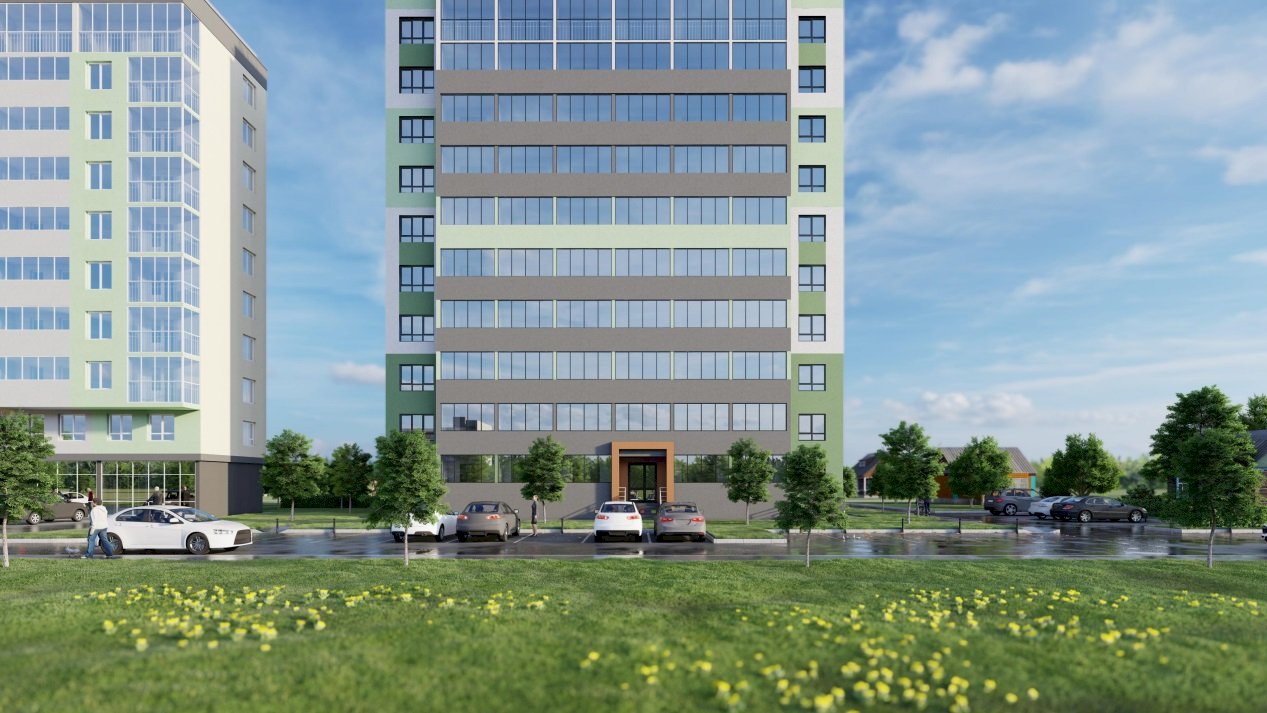 Каркас многоквартирного дома будет сборно-монолитный железобетонный, стены — из панелей. Фасады дома утеплят и отделают тонкослойной декоративной штукатуркой Ceresit.