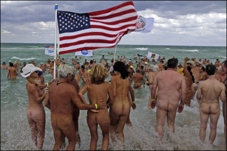 Нудисты совершили массовый заплыв голышом