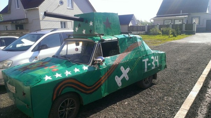 Участники сообщества "Барнаул 22" устроили в честь Победы автопробег по Барнаулу. Для этого водители нарядили своих железных коней в военном стиле. А кто-то превратил легковушки в танки и прочую военную технику.