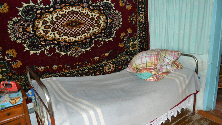 Уроженка Тигирека Нина Петровна живет по-деревенски просто, все удобства на улице, никакой воды, никаких душей тут не было, нет и уже никогда не будет. Из коммунальных благ только электричество. В доме только старая мебель да ламповый телевизор, зато есть приставка для ТВ, кем-то когда-то подаренная.
